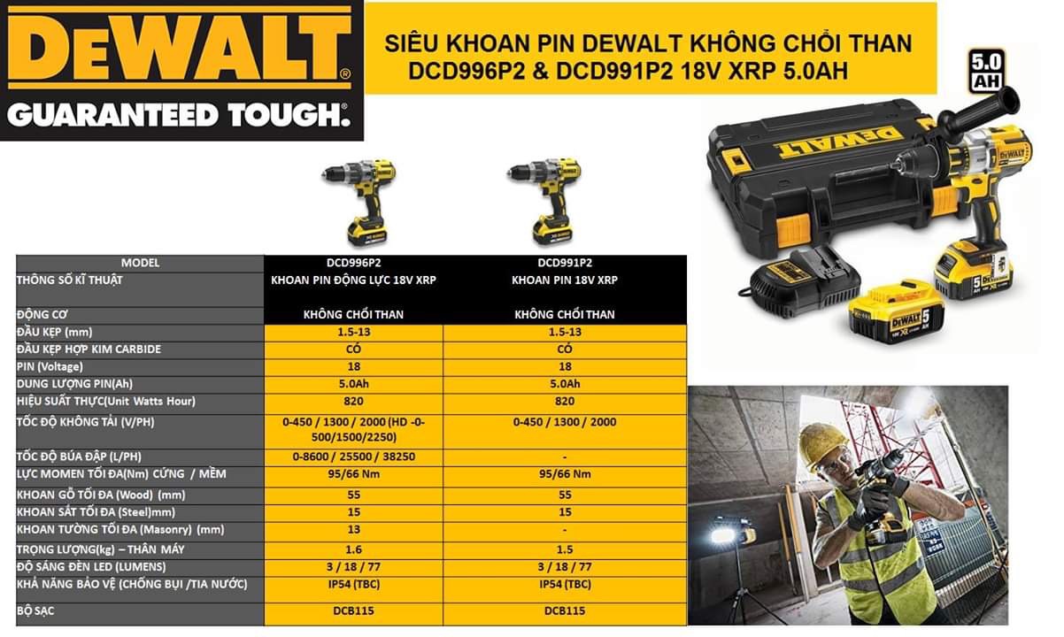 Dewalt DCD991 và Dewalt DCD996 là hai dòng máy khoan pin cao cấp của thương hiệu Mỹ vừa được tung ra thị trường. Hai mẫu sản phẩm sản phẩm nổi bật nhất là máy khoan pin Dewalt DCD991P2-KR và Dewalt DCD996P2-KR không chổi than mang đến hiệu năng mạnh mẽ cùng trang bị cao cấp. Cùng khám phá nét hấp dẫn của chúng sau đây.